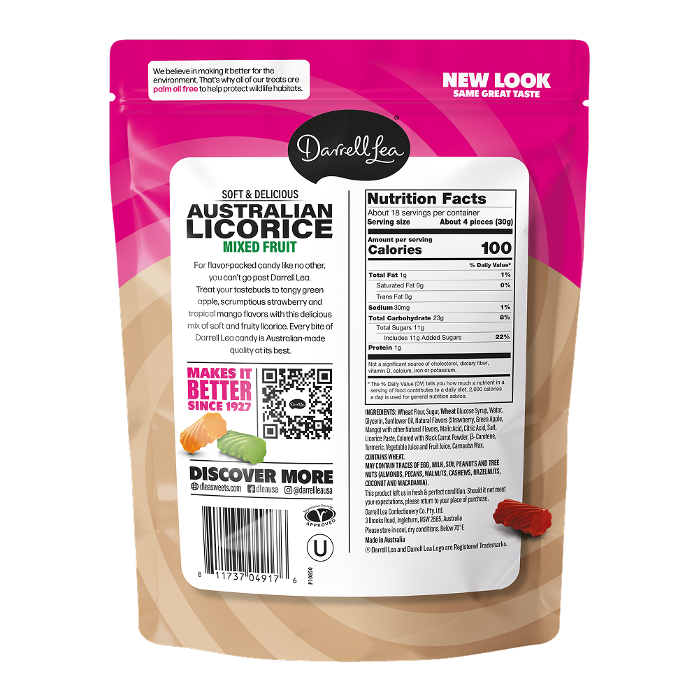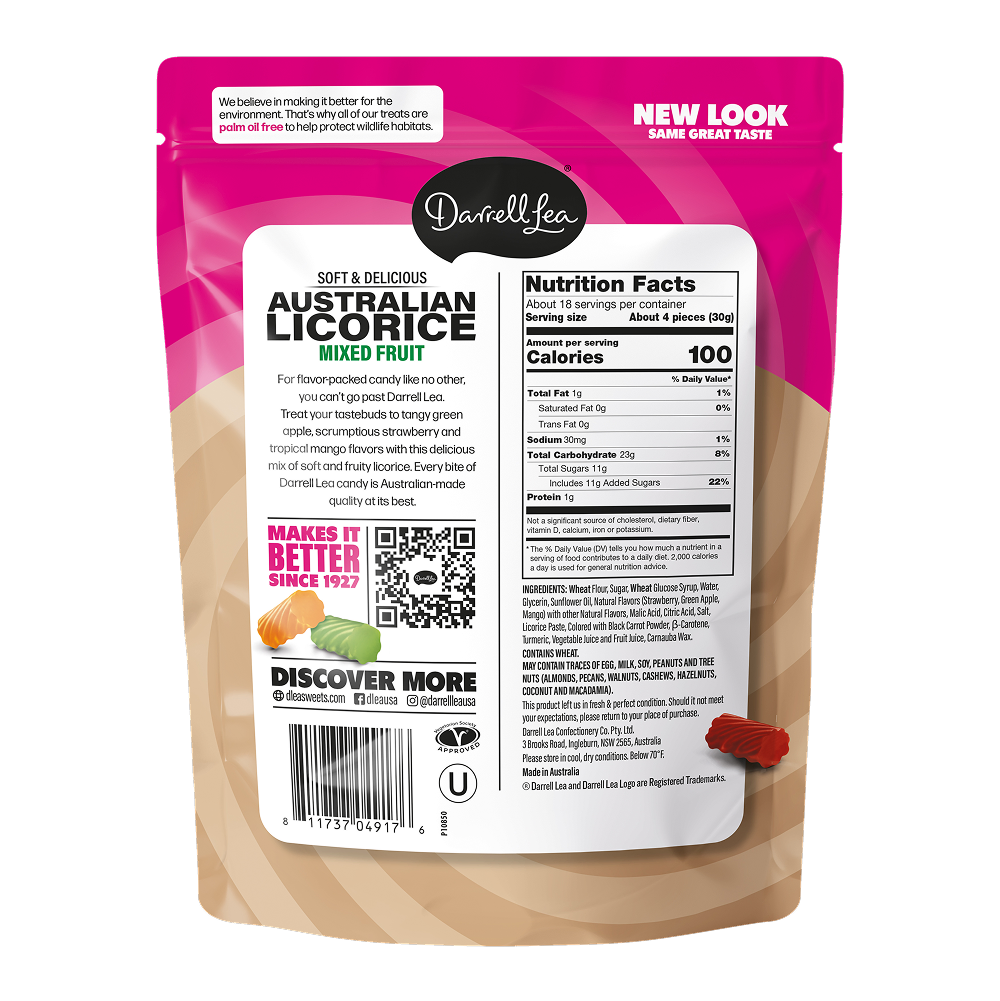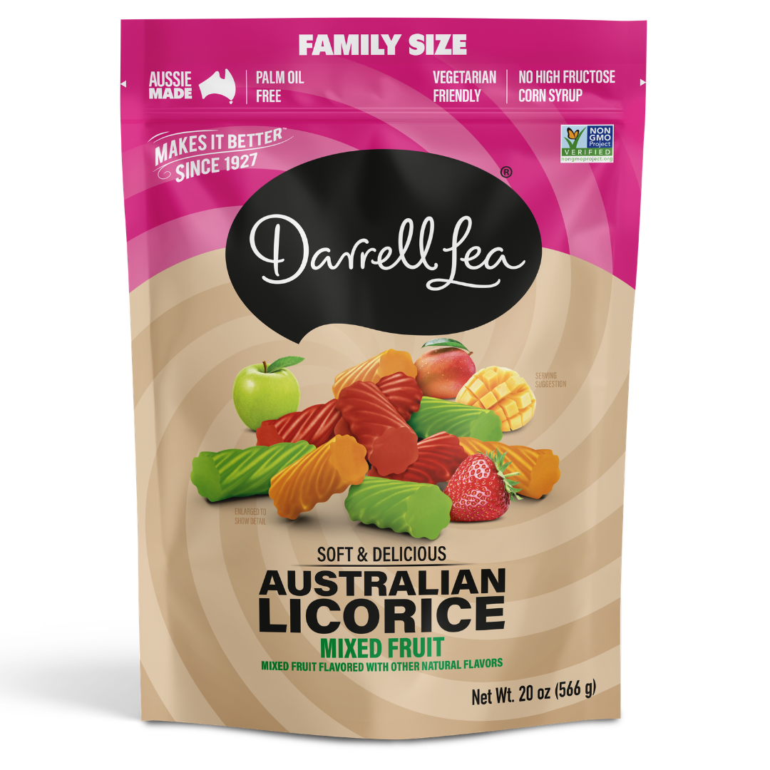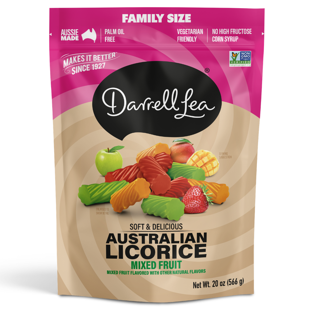If there’s one thing Darrell Lea knows, it’s licorice. Taste it in our 100% Aussie made, soft- licorice. Its full of bright, delicious strawberry flavor, offering a combination of irrestible taste and texture. Now available in family size for sharing.